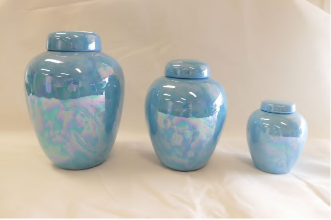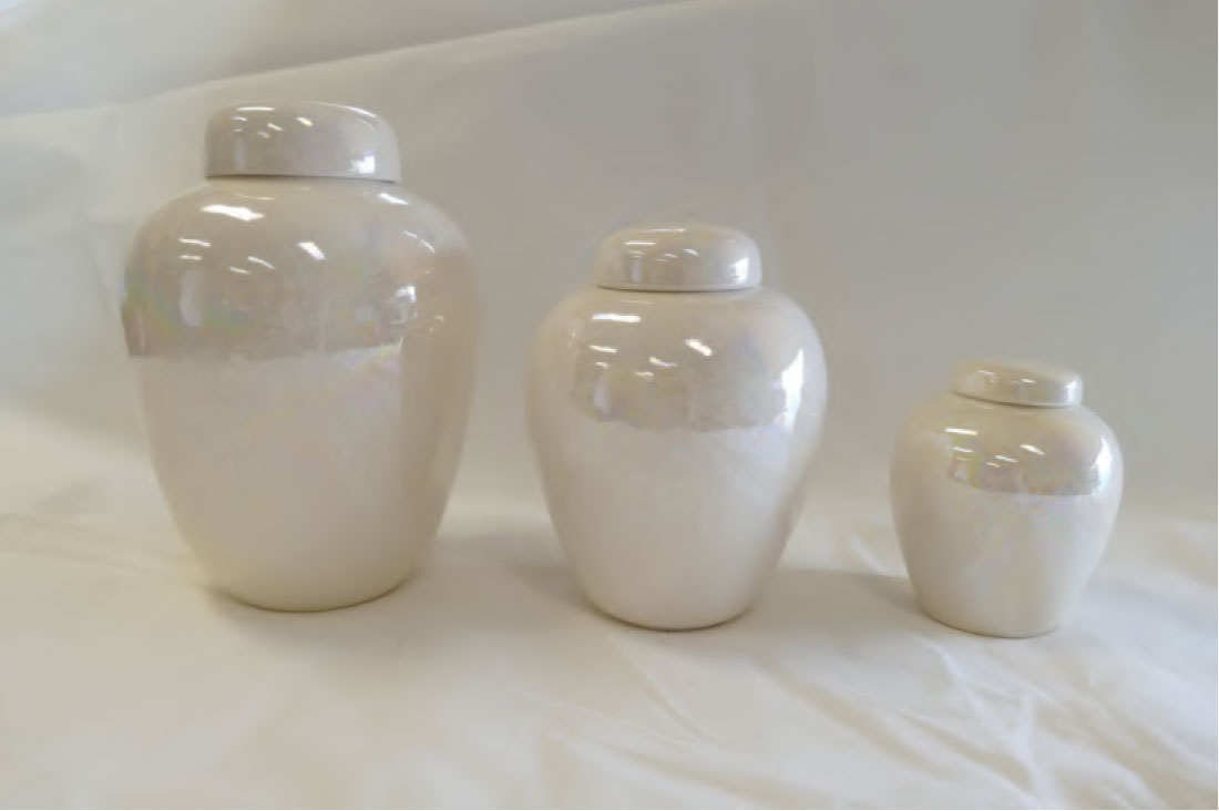 This beautiful ceramic collection features an iridescent mother-of-pearl glaze, adding a delicate and elegant touch. Suitable for pets of any size, it offers a timeless tribute to your beloved companion. If desired, a customizable plate is available, designed to hang gracefully around the neck of the urn for a personalized finish.